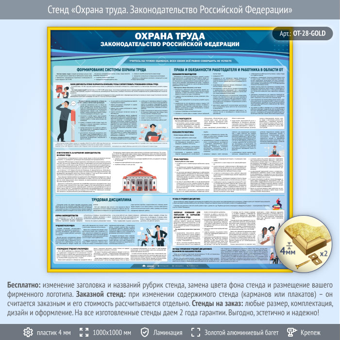 Стенд «Охрана труда. Законодательство Российской Федерации» (OT-28-GOLD) в Томске купить