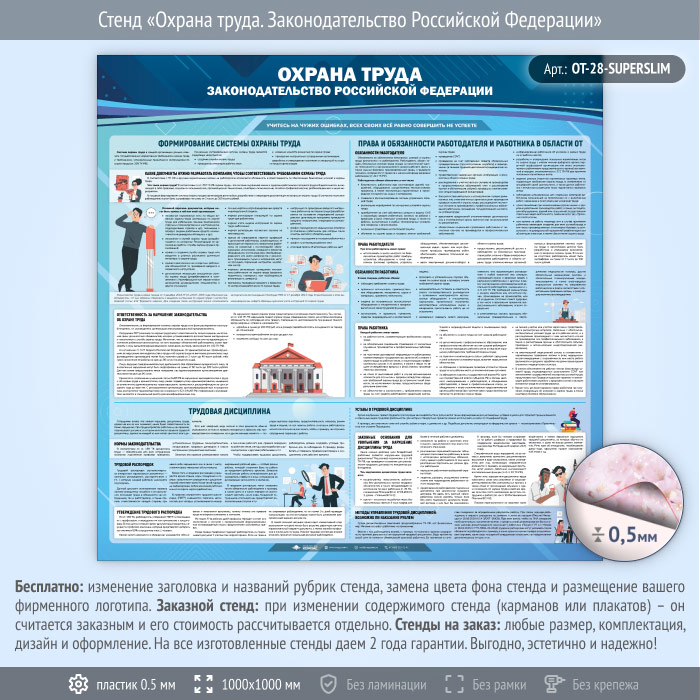 Стенд «Охрана труда. Законодательство Российской Федерации» (OT-28-SUPERSLIM) в Томске купить
