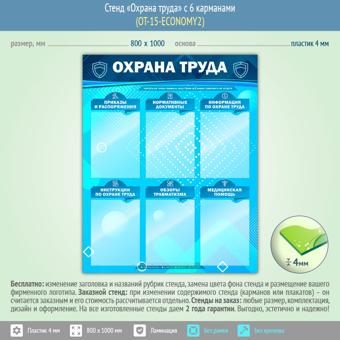 Стенд «Охрана труда» с 6 карманами (OT-15-ECONOMY2) в Томске купить