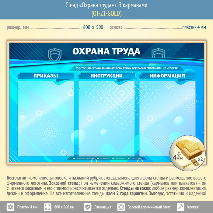 Стенд «Охрана труда» с 3 карманами (OT-21-GOLD) в Томске купить