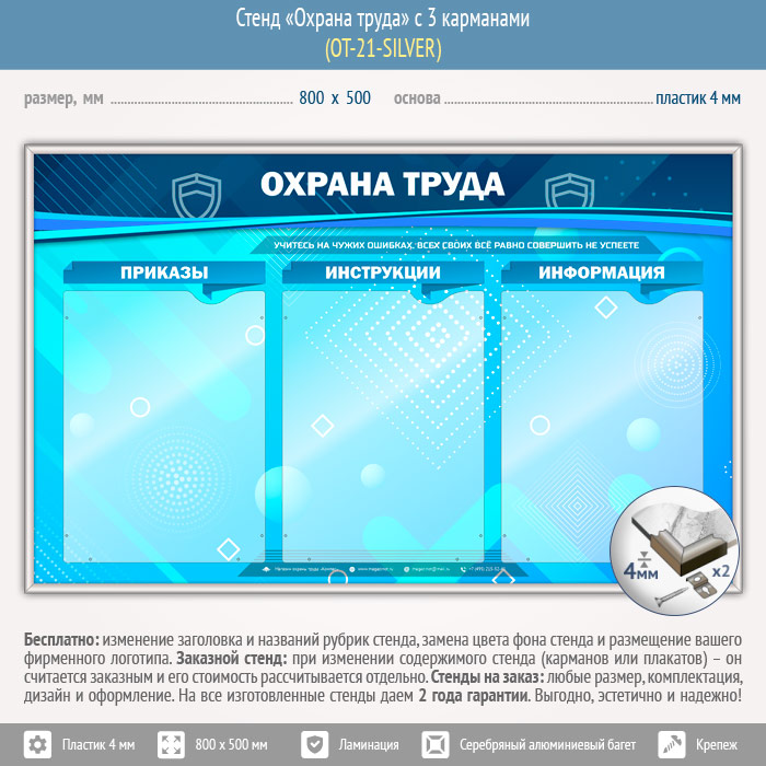 Стенд «Охрана труда» с 3 карманами (OT-21-SILVER) в Томске купить