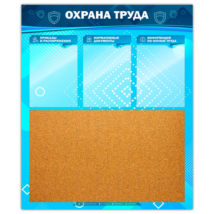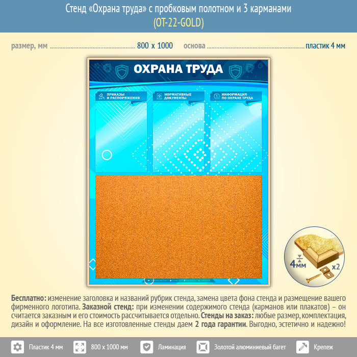 Стенд «Охрана труда» с пробковым полотном и 3 карманами (OT-22-GOLD) в Томске купить
