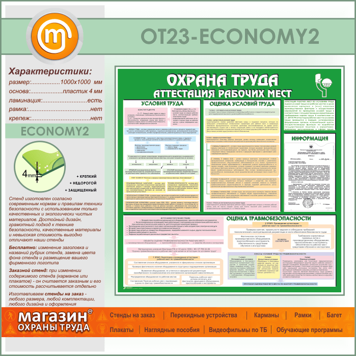 Стенд «Охрана труда. Аттестация рабочих мест» с карманом (OT-23-ECONOMY2) в Томске купить