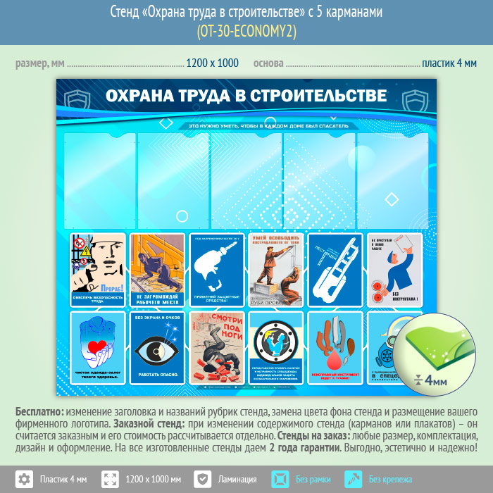 Стенд «Охрана труда в строительстве» с 5 карманами (OT-30-ECONOMY2) в Томске купить