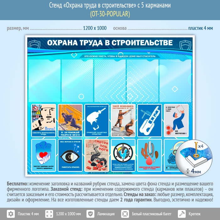 Стенд «Охрана труда в строительстве» с 5 карманами (OT-30-POPULAR) в Томске купить