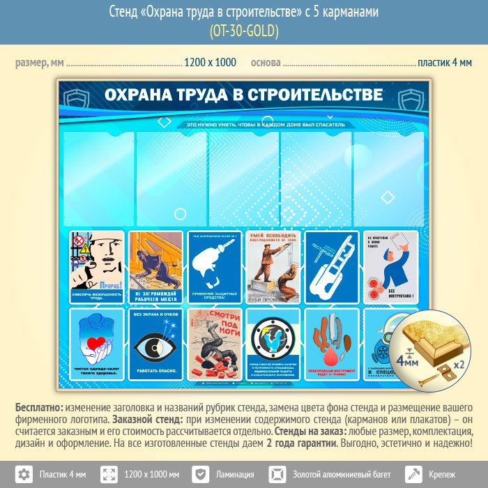 Стенд «Охрана труда в строительстве» с 5 карманами (OT-30-GOLD) в Томске купить