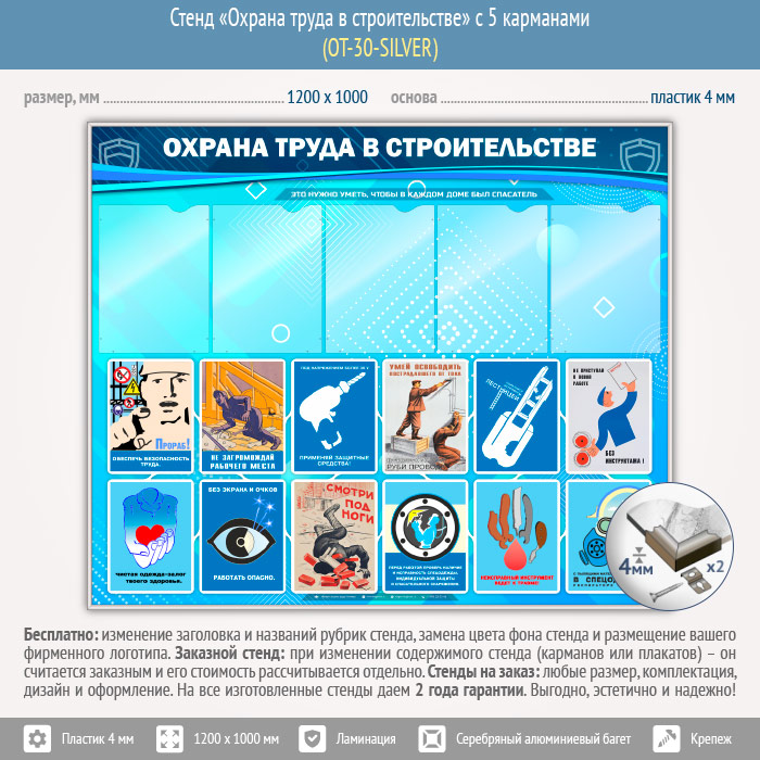 Стенд «Охрана труда в строительстве» с 5 карманами (OT-30-SILVER) в Томске купить