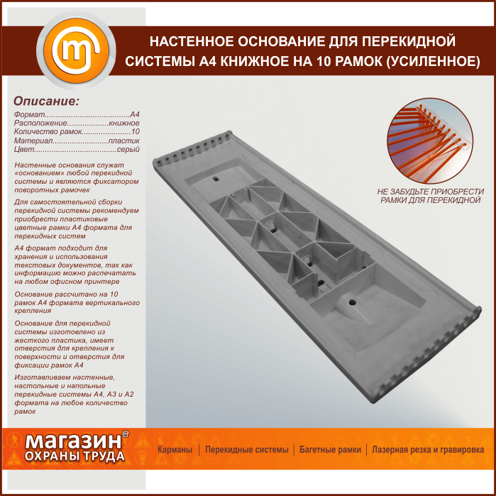 Настенное основание для перекидной системы А4 книжное на 10 рамок (усиленное) в Томске купить