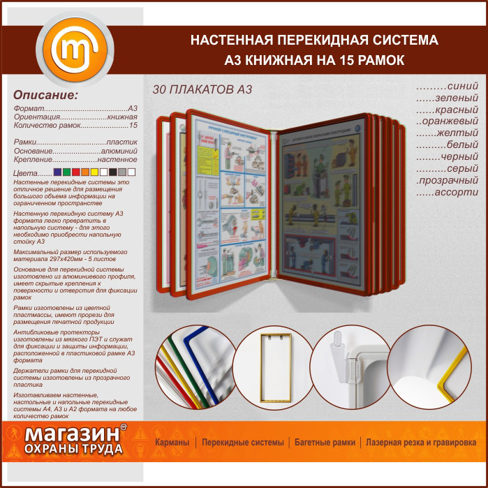Настенная перекидная система А3 на 15 рамок книжная в Томске купить