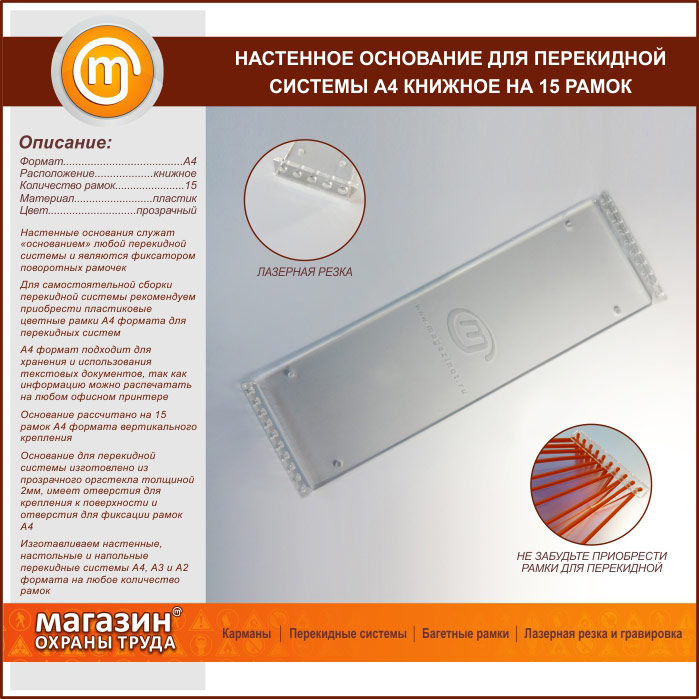 Настенное основание для перекидной системы А4 книжное на 15 рамок (оргстекло) в Томске купить