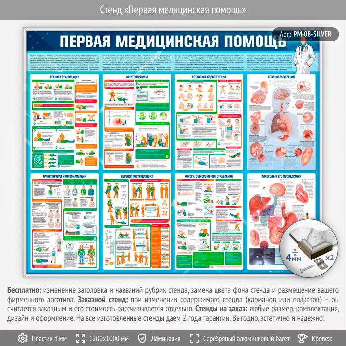 Стенд «Первая медицинская помощь» (PM-08-SILVER) в Томске купить