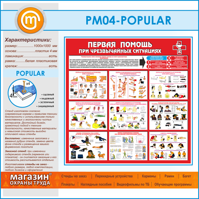 Стенд «Первая помощь при чрезвычайных ситуациях» (PM-04-POPULAR) в Томске купить