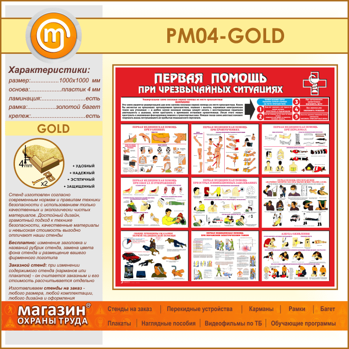 Стенд «Первая помощь при чрезвычайных ситуациях» (PM-04-GOLD) в Томске купить