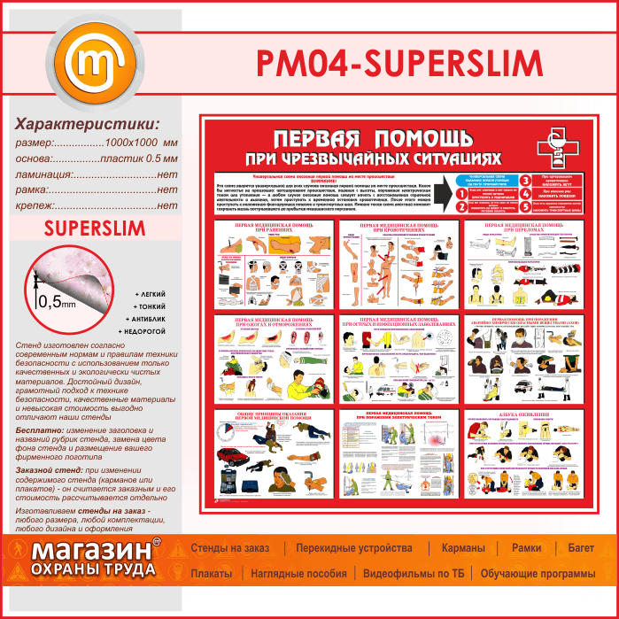 Стенд «Первая помощь при чрезвычайных ситуациях» (PM-04-SUPERSLIM) в Томске купить