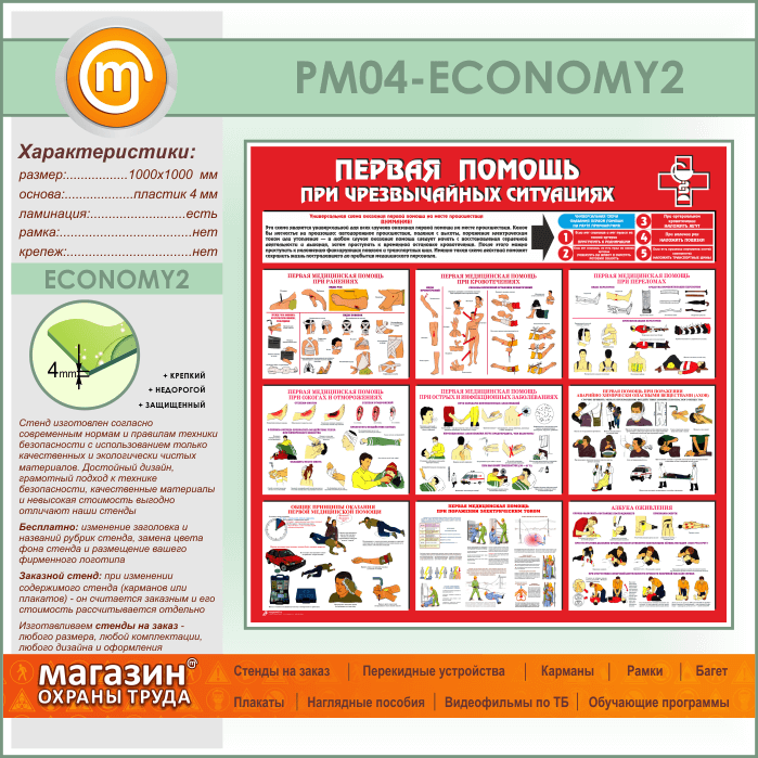 Стенд «Первая помощь при чрезвычайных ситуациях» (PM-04-ECONOMY2) в Томске купить