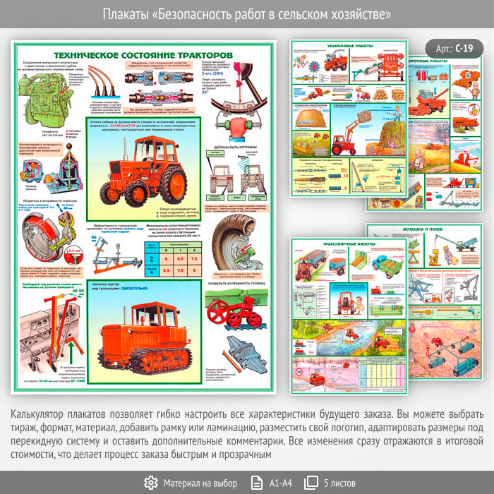Комплект плакатов «Безопасность работ в сельском хозяйстве» из 5 листов – достойное качество и полезная информация по приемлемой цене