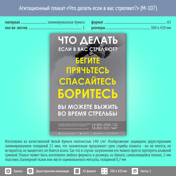 Плакат «Что делать если в вас стреляют?» (М-107, ламинированная бумага, А3, 1 лист) в Томске купить