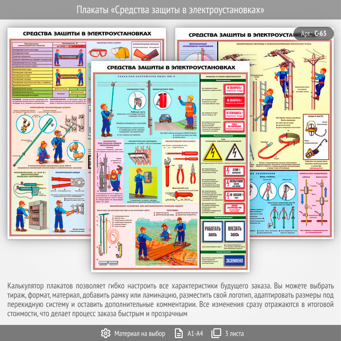 Плакаты «Средства защиты в электроустановках» (С-65, 3 листа)