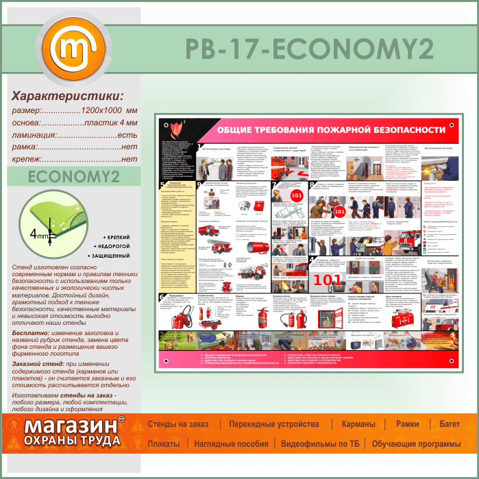 Стенд «Общие требования пожарной безопасности» (PB-17-ECONOMY2) в Томске купить