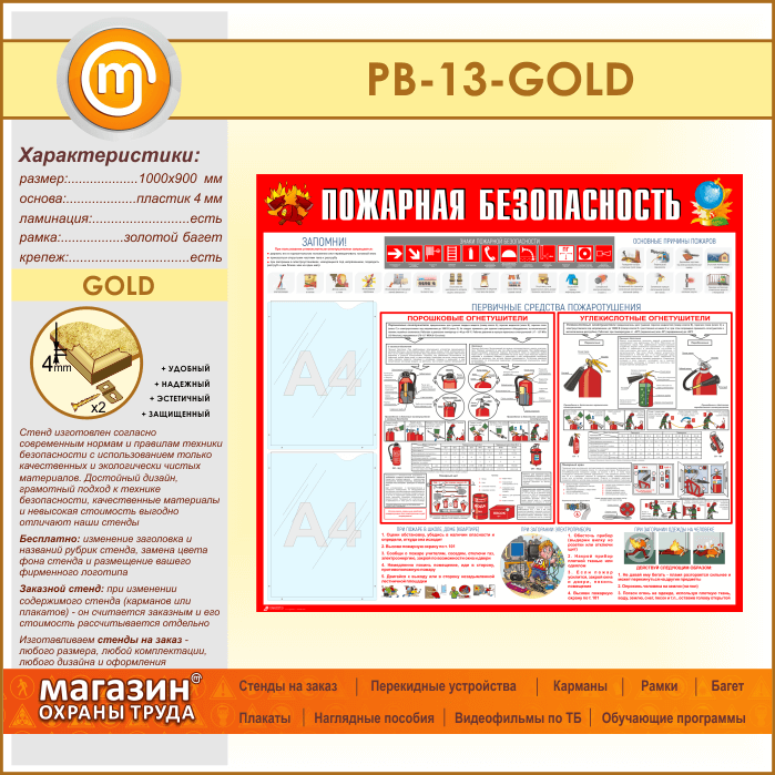 Стенд «Пожарная безопасность» с 2 карманами (PB-13-GOLD) в Томске купить