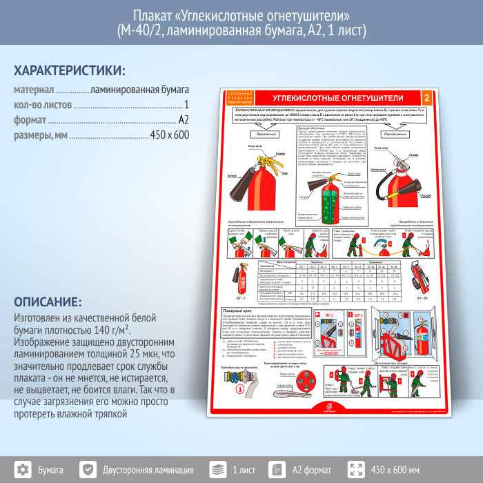 Плакат «Углекислотные огнетушители» (М-40/2, ламинированная бумага, А2, 1 лист) в Томске купить