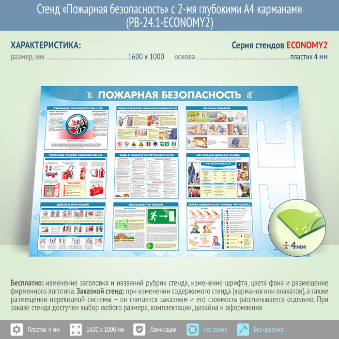 Стенд «Пожарная безопасность» с 2-мя глубокими А4 карманами (PB-24.1-ECONOMY2) в Томске купить