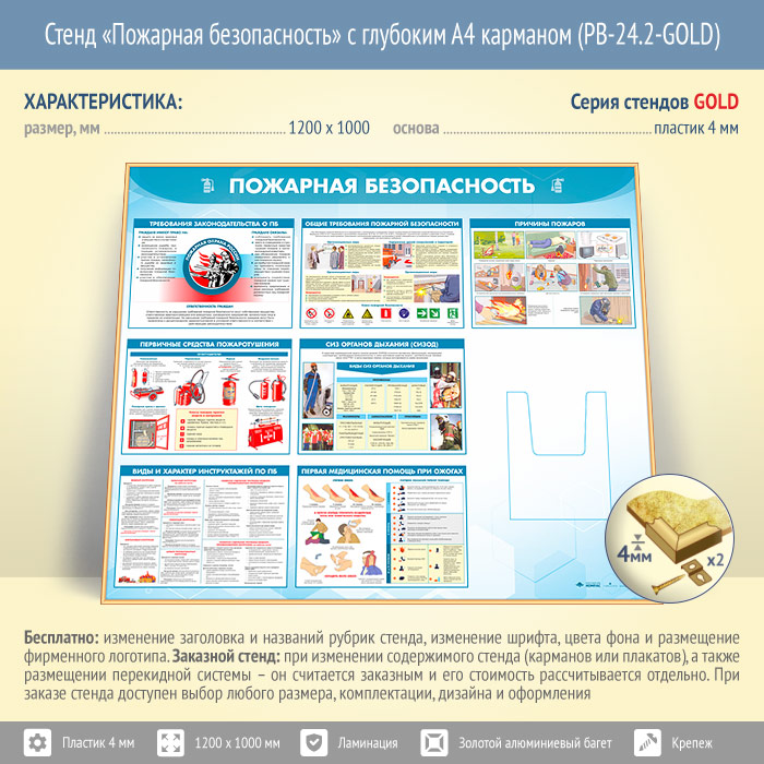 Стенд «Пожарная безопасность» с глубоким А4 карманом (PB-24.2-GOLD) в Томске купить