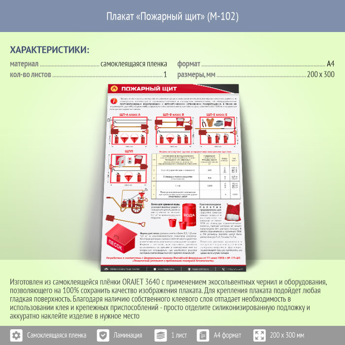 Плакат «Пожарный щит» (М-102, самоклеящаяся пленка, А4, 1 лист) в Томске купить