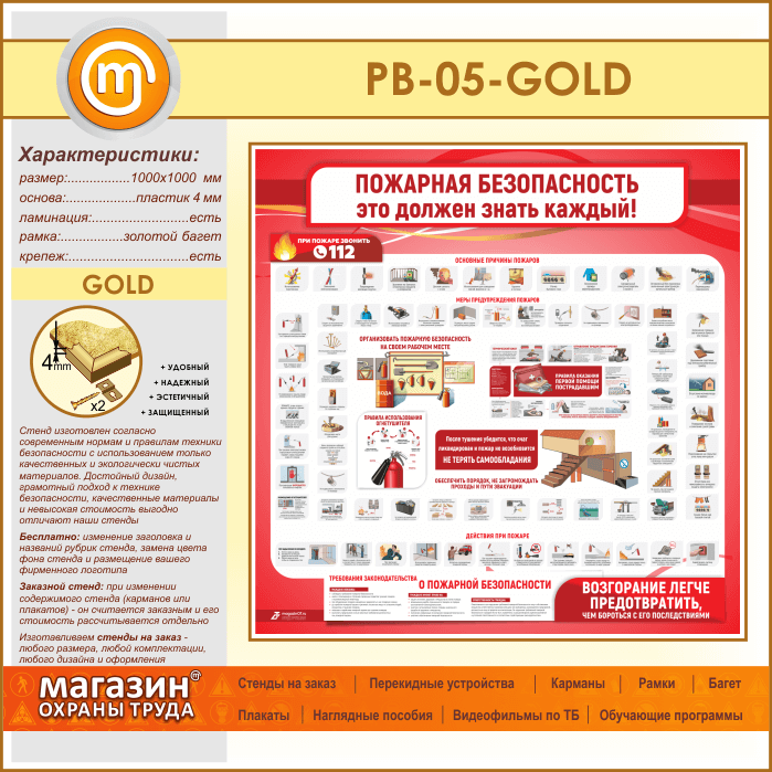 Стенд «Пожарная безопасность. Это должен знать каждый» (PB-05-GOLD) в Томске купить