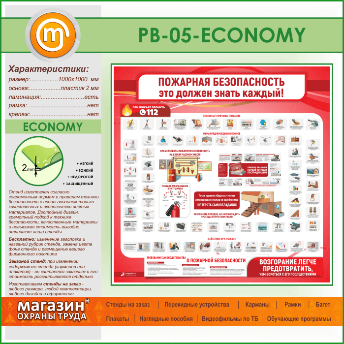 Стенд «Пожарная безопасность. Это должен знать каждый» (PB-05-ECONOMY) в Томске купить