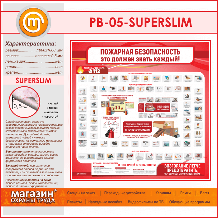 Стенд «Пожарная безопасность. Это должен знать каждый» (PB-05-SUPERSLIM) в Томске купить