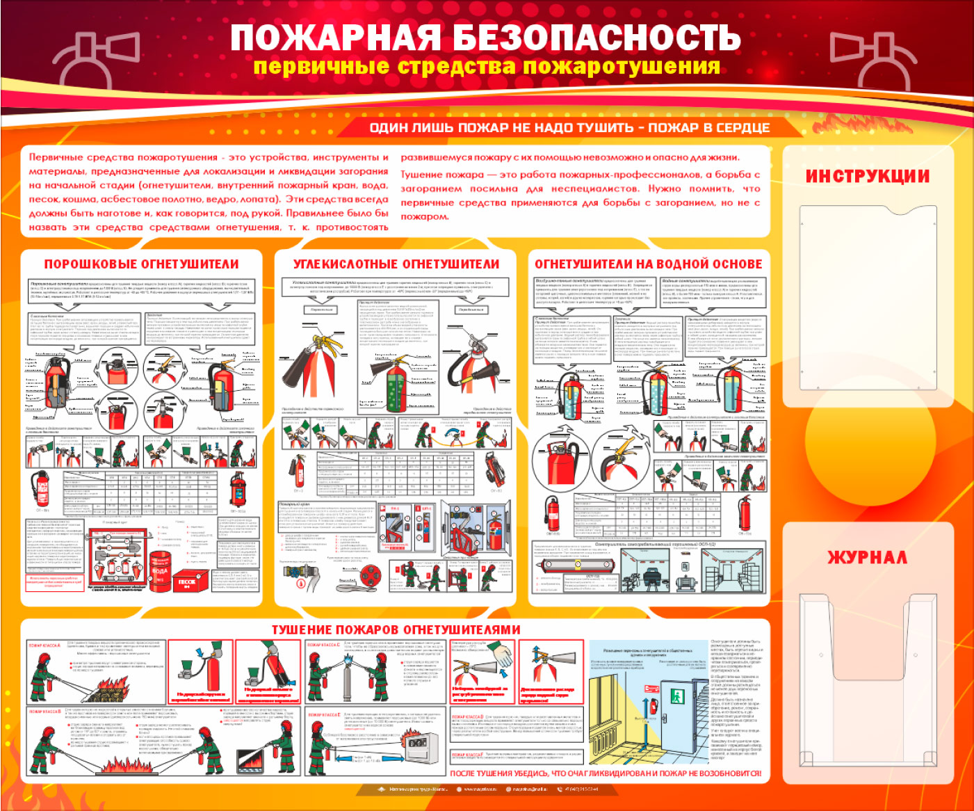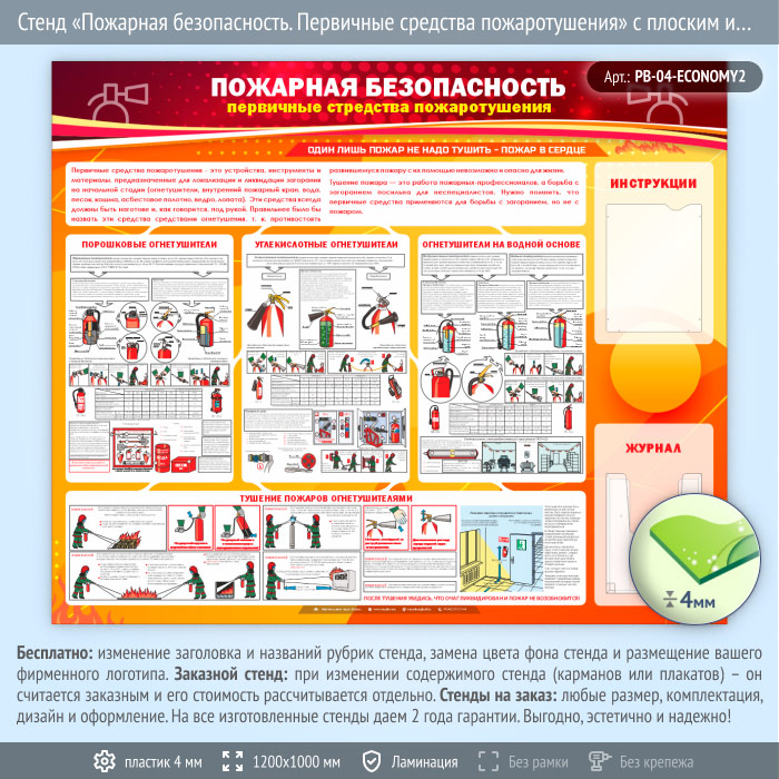 Стенд «Пожарная безопасность. Первичные средства пожаротушения» с плоским и объемным карманами (PB-04-ECONOMY2) в Томске купить