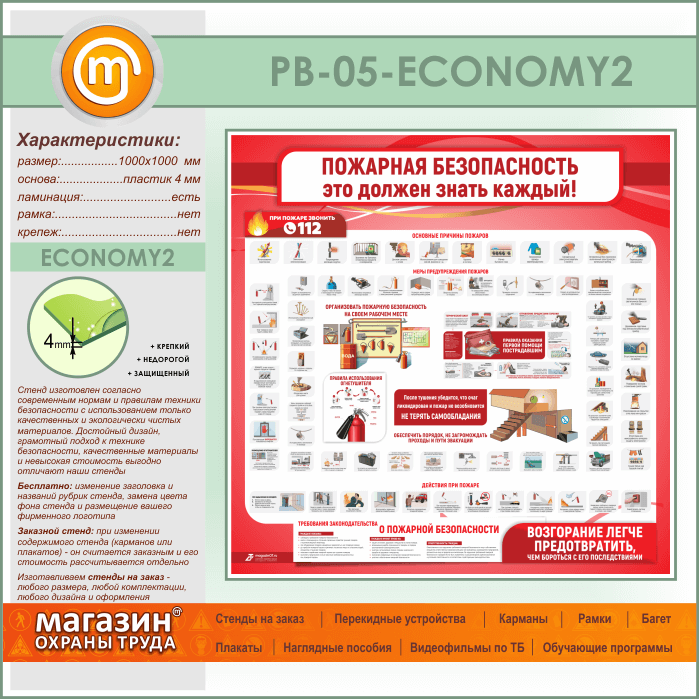 Стенд «Пожарная безопасность. Это должен знать каждый» (PB-05-ECONOMY2) в Томске купить