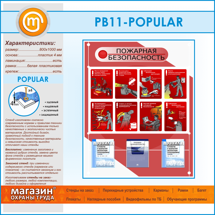 Стенд «Стенд пожарная безопасность в строительстве» с 3 объемными карманами (PB-11-POPULAR) в Томске купить