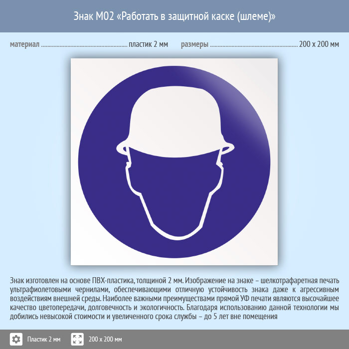 Знак M02 «Работать в защитной каске (шлеме)» (пластик, 200х200 мм) в Томске купить