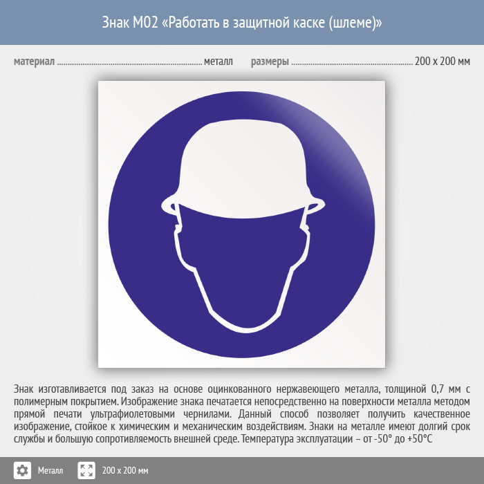 Знак M02 «Работать в защитной каске (шлеме)» (металл, 200х200 мм) в Томске купить