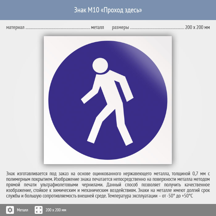 Знак M10 «Проход здесь» (металл, 200х200 мм) в Томске купить