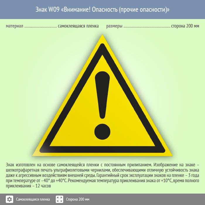 Знак W09 «Внимание! опасность (прочие опасности)» (пленка, сторона 200 мм) в Томске купить