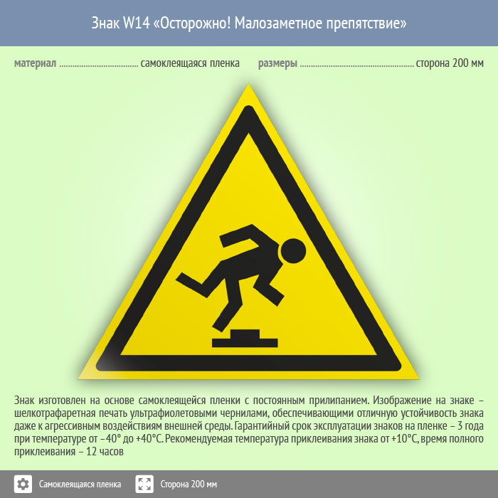 Знак W14 «Осторожно! малозаметное препятствие» (пленка, сторона 200 мм) в Томске купить