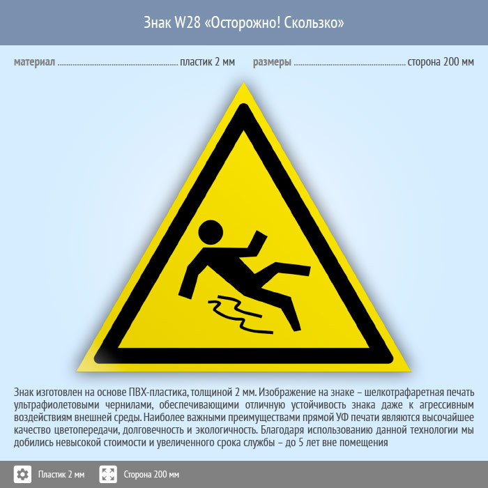 Знак W28 «Осторожно! скользко» (пластик, сторона 200 мм) в Томске купить