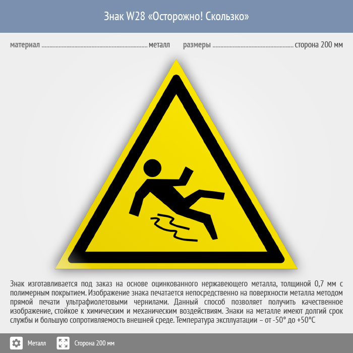 Знак W28 «Осторожно! скользко» (металл, сторона 200 мм) в Томске купить