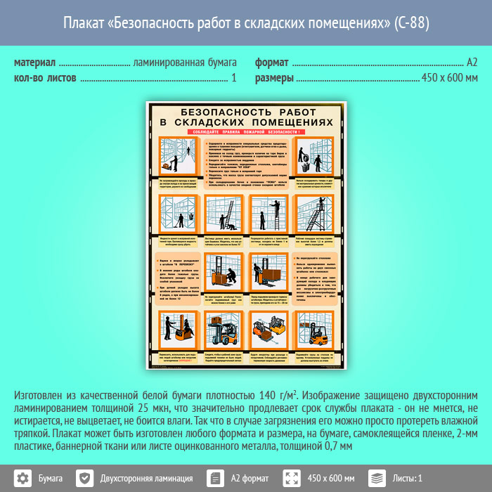 Плакат «Безопасность работ в складских помещениях» (С-88, ламинированная бумага, А2, 1 лист) в Томске купить