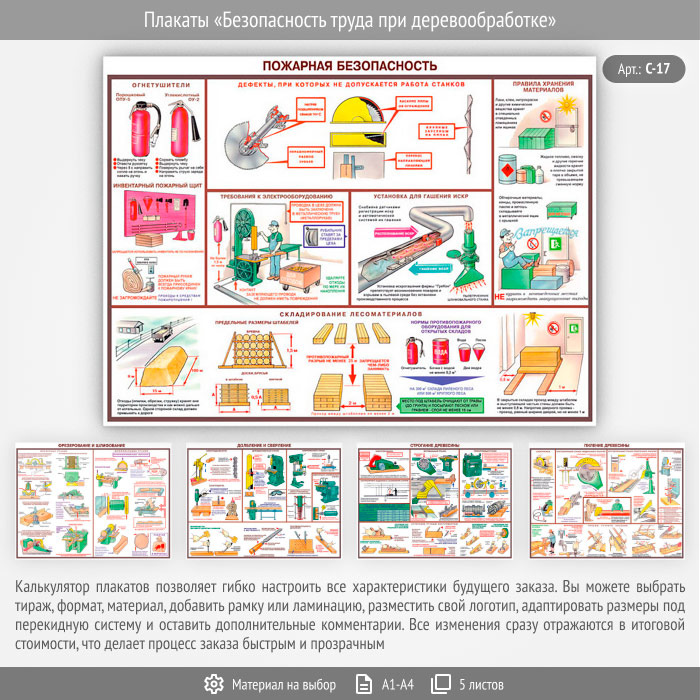 Плакаты «Безопасность труда при деревообработке» (С-17, 5 листов) в Томске купить