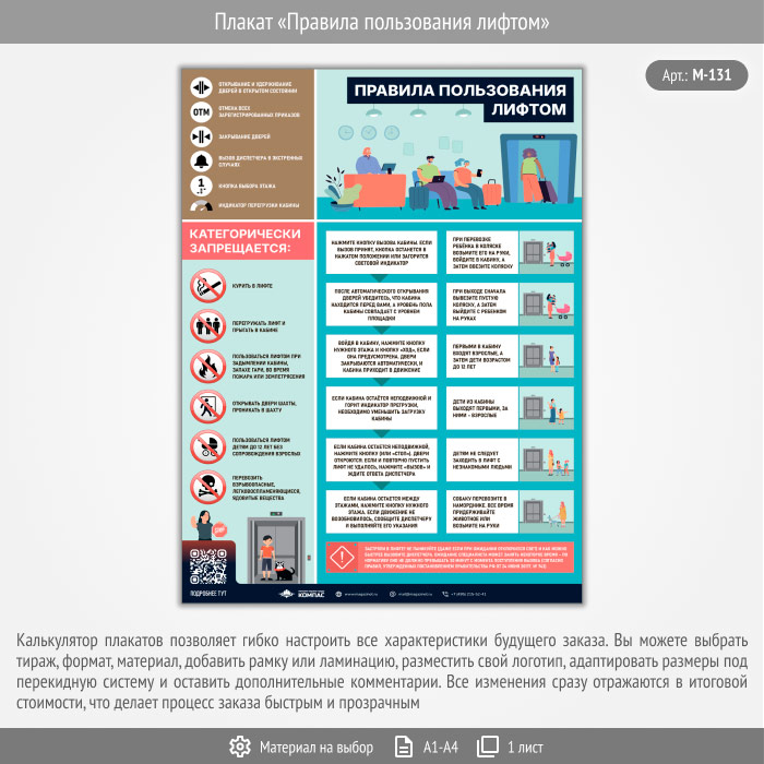 Плакат «Правила пользования лифтом» с QR (М-131, 1 лист) в Томске купить