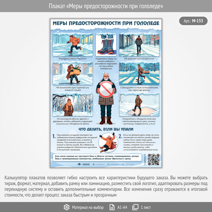 Плакат «Меры предосторожности при гололеде» с QR (М-133, 1 лист) в Томске купить