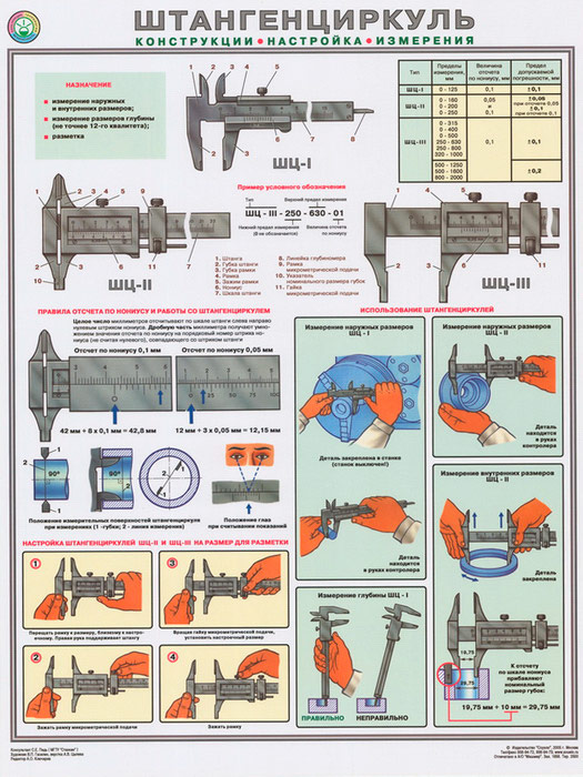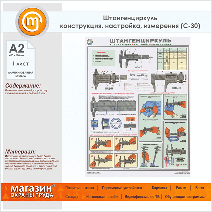 Плакат «Штангенциркуль - конструкция, настройка, измерения» (С-30, ламинированная бумага, А2, 1 лист) в Томске купить