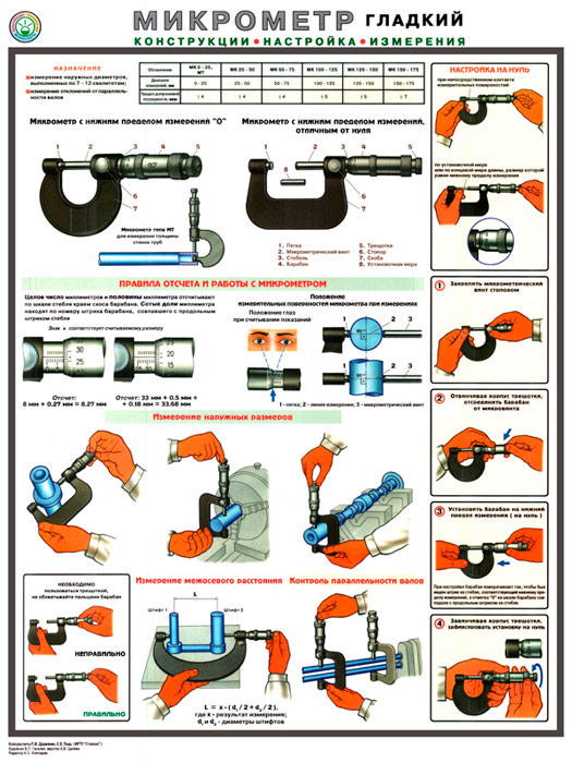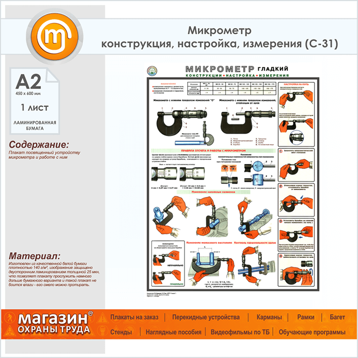 Плакат «Микрометр - конструкция, настройка, измерения» (С-31, ламинированная бумага, А2, 1 лист) в Томске купить