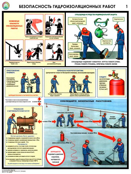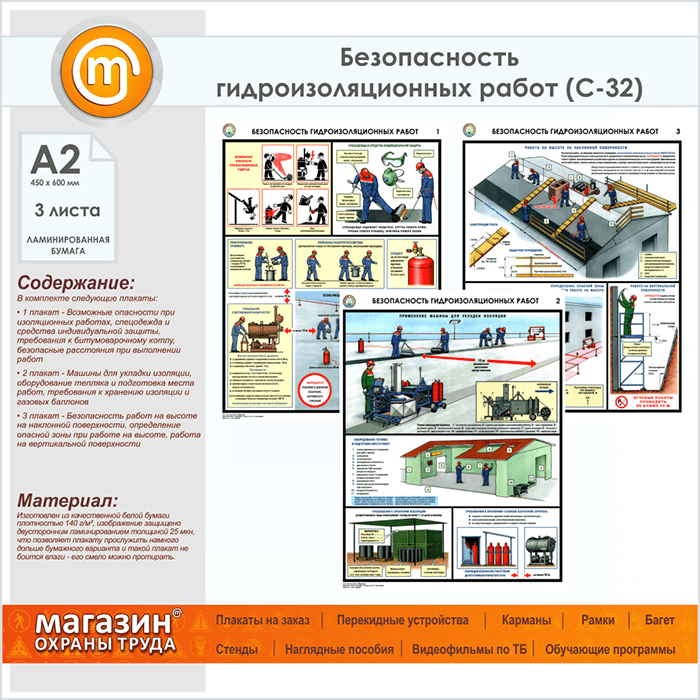 Плакаты «Безопасность гидроизоляционных работ» (С-32, ламинированная бумага, А2, 3 листа) в Томске купить