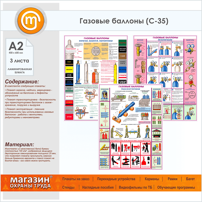 Плакаты «Газовые баллоны» (С-35, ламинированная бумага, А2, 3 листа) в Томске купить