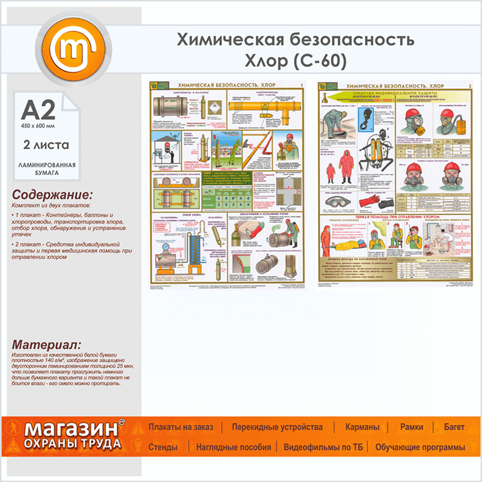 Плакаты «Химическая безопасность. Хлор» (С-60, ламинированная бумага, А2, 2 листа) в Томске купить